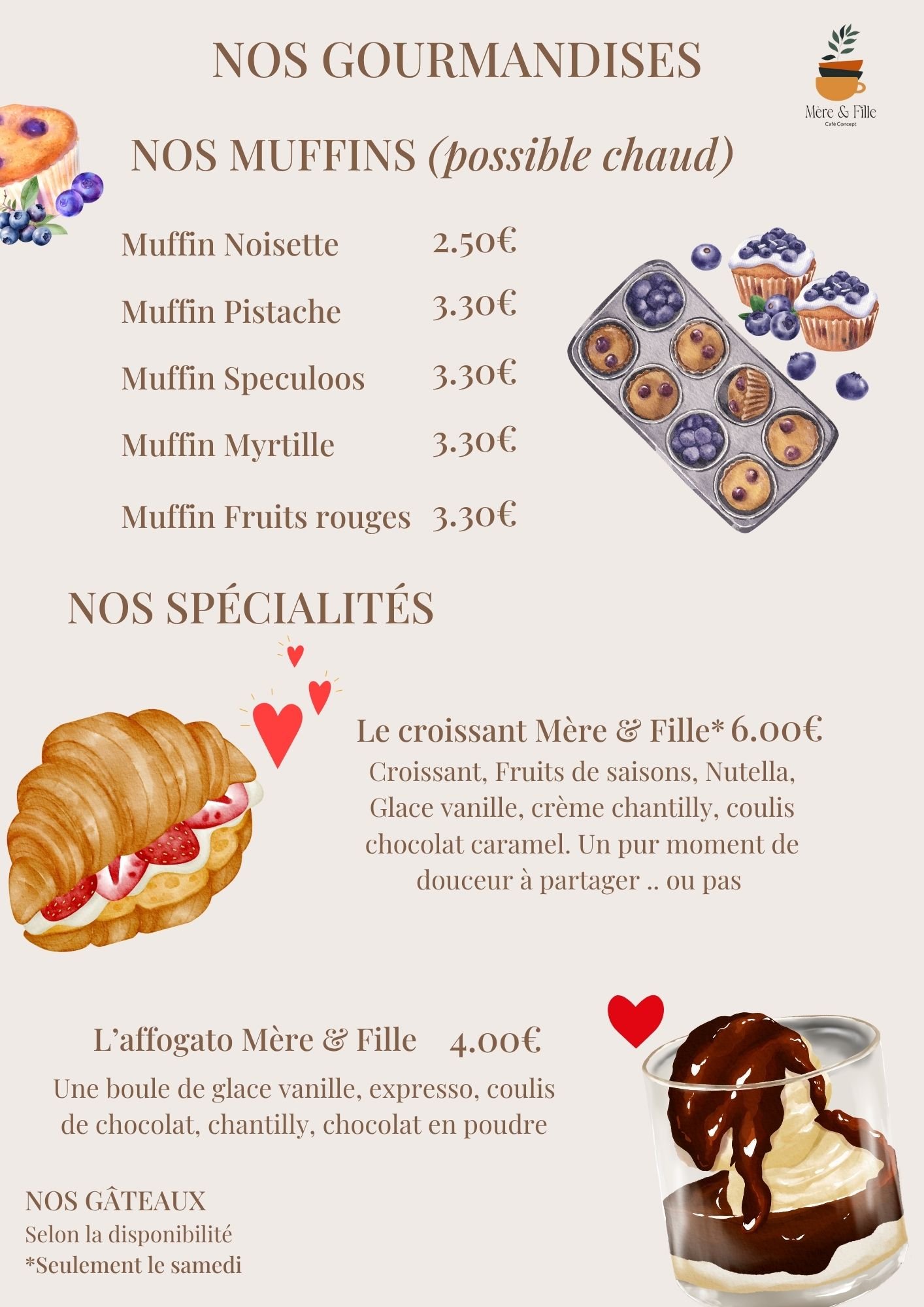 Tasse de café et sélection de gourmandises au café Mère et Fille à Compiègne.